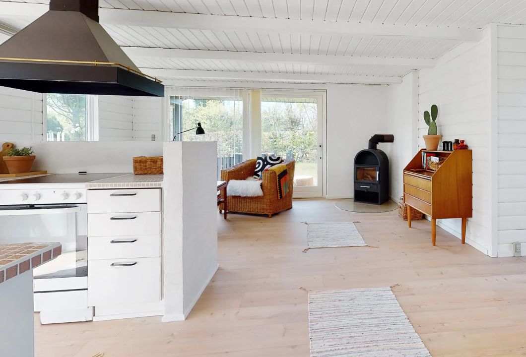 Sommerhuset er opført i 1983, men fremstår i dag både moderne og indbydende. Boligen rummer 64 m², fordelt på 3 værelser og en skøn opholdsafdeling, hvor køkken og stue smelter naturligt sammen. Indretningen er holdt i lyse farver med ludfyrgulve, lyst køkken og bad, som tilsammen skaber en rolig og hyggelig atmosfære. I stuen finder du desuden en stemningsfuld brændeovn fra 2021, der gør huset perfekt – også uden for sommersæsonen.